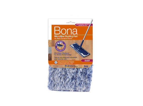 Designed for use on all Bona Mops, including the Bona Spray Mop (sold separately), the Bona Mop Microfibre Dusting Pad is ideal for use with the mop to pick up dust and dirt before wet mopping your floors. The Dusting Pad easily attaches to the Bona Mop base using simple fastening tape strips. The Dust Pad design uses electrostatic energy to attract dust, pet hair, micro particles and common household allergens. The dust pad is machine washable and reusable up to 300 times.