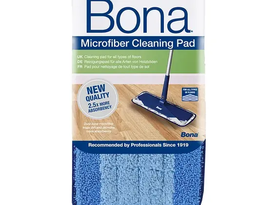 The Bona Microfibre Cleaning Pad is designed for wet cleaning to pick up dirt and grime, leaving your floors sparkling clean with no dulling marks. The Cleaning Pad easily attaches to the Bona Mop base using simple fastening tape strips.